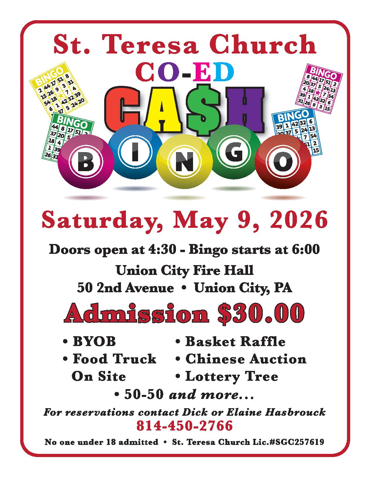 St. Teresa Church Cash Bingo - Saturday, May 9, 2026